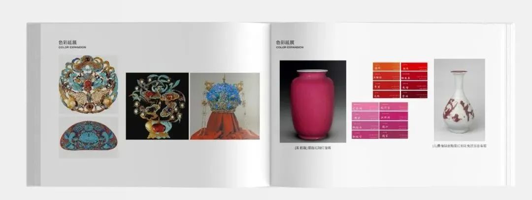 傳統(tǒng)色彩 創(chuàng)新應(yīng)用中國傳統(tǒng)色彩的視覺美學(xué)系統(tǒng)為整體性、系統(tǒng)性地提升整臺晚會的美學(xué)調(diào)性,費(fèi)俊帶領(lǐng)團(tuán)隊(duì)建立了一套屬于春晚的色彩系統(tǒng),并設(shè)計(jì)了一本色彩系統(tǒng)應(yīng)用手冊,這在春晚的歷史上尚屬首次。這本手冊為所有參與創(chuàng)作和制作的團(tuán)隊(duì)與個(gè)人提供了一套行之有效的配色工具及色彩應(yīng)用指南,這既大大提高了設(shè)計(jì)和制作效率,又為形成更加整體性的視覺美學(xué)奠定了重要的基礎(chǔ)。2023春晚色彩系統(tǒng)應(yīng)用手冊費(fèi)俊將色彩系統(tǒng)的建構(gòu)和應(yīng)用邏輯概括為“尋色”、“拾色”、“弄色”、“舞色”這四個(gè)階段。