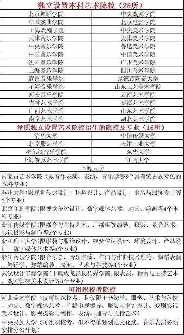 本篇為大家整理了:“28+16”所獨(dú)立藝術(shù)院校名單、985院校名單、211院校名單、雙一流院校名單、第五輪藝術(shù)學(xué)科評(píng)估院校名單、部署院校名單。