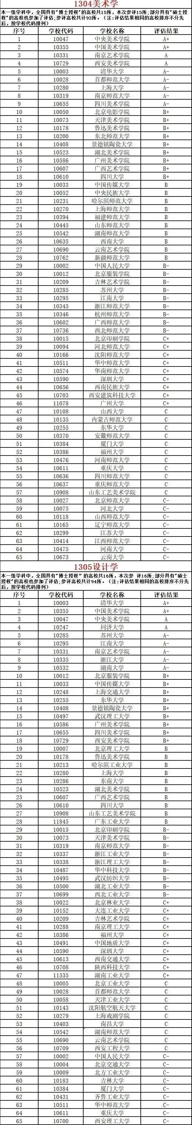 — 第五輪藝術(shù)學(xué)科評(píng)估院校名單 —