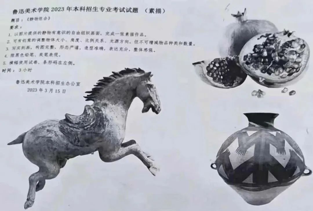 今年美院復試考題在往年基礎上變化升級,國美榮獲“中國反套路學院”稱號,魯美則撞題天美,考的都是文物!引領國潮復興,注重文化傳承。