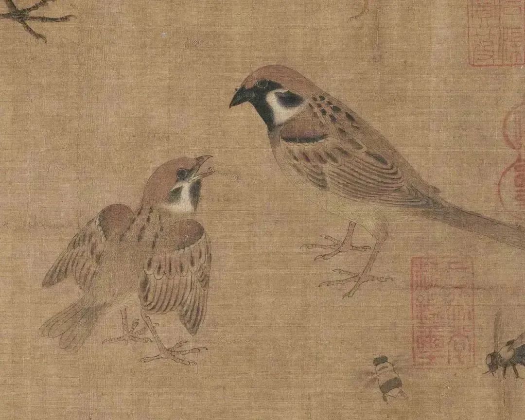此圖雖是黃筌給他兒子黃居寀學(xué)習(xí)的畫稿,不是一幅有完整構(gòu)圖的花鳥畫創(chuàng)作,只是散布著一些蟲鳥,然而它是一件可貴的作品,表明這時(shí)期的花鳥畫日趨成熟。這些蟲鳥的描繪,或飛鳴、或靜止,都精微細(xì)膩地表達(dá)了它們的情態(tài),黃筌最擅花鳥、兼工人物、山水、墨竹、龍水,多繪宮中異卉珍禽。他的花鳥畫物點(diǎn)是雙鉤著色—淡墨勾勒輪廓,色彩濃麗而鮮艷。用筆新細(xì),以色暈染,幾乎不見墨跡。